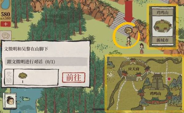 步骤一:前往虎丘,完成与文徵明和吴黎对话即可获得新城市——鸡鸣山。