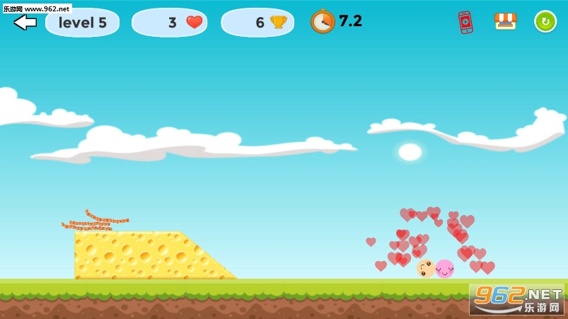 《恋爱奶酪球安卓版》是一款非常考验脑力的益智游戏,核心玩法是通过各种方式让两个奶酪球成功相撞。如何以最高效的方式达成目标,就得靠玩家开动脑筋了。游戏中融入了一些物理原理,大家凭借大致的推理就能摸索出规律。整体难度不算太高,但每一关的设计都各有特点,实际体验到的难度会因人而异,感兴趣的朋友不妨来挑战试试。
