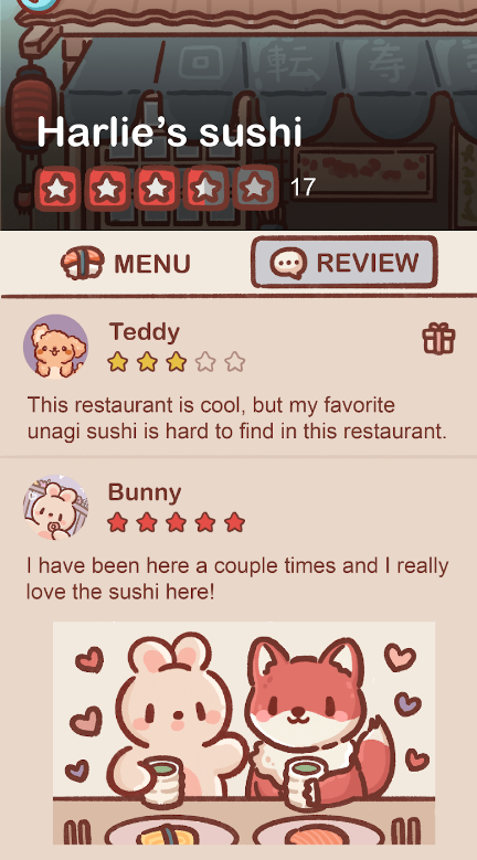4、社交互动的乐趣:玩家能够和其他玩家交流分享自己制作寿司的经验心得,一同探寻最棒的寿司配方,以此提升游戏的社交互动体验。