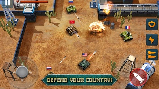 3、在游戏里驾驶自己的坦克参与战斗,可依据自身的驾驶技巧来选择合适的策略,通过消灭敌人来闯过关卡。
