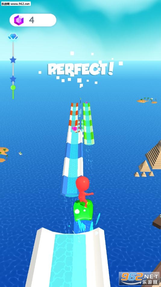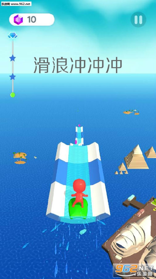 《滑浪冲冲冲》是一款主打水上滑梯趣味冲刺的休闲游戏,清新明快的界面设计仿佛将你带入充满活力的夏日乐园,开启一段在水上世界的欢乐冒险。游戏中,你需要精准掌控滑梯节奏,凭借敏捷的手速操纵角色,乘坐各式特色道具在蜿蜒的长滑梯上飞速前进。不仅要全力冲刺超越对手,还要巧妙寻找隐藏捷径,最终以第一名的成绩冲过终点线,享受胜利的喜悦。