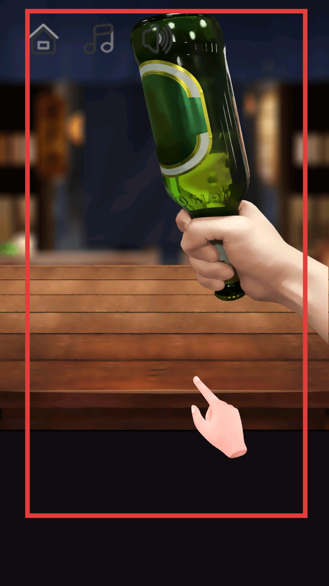 在碎酒瓶项目的场景里,按照提示用手指点击桌面区域,就能触发碎瓶动作。此时手中的酒瓶会撞击桌面,呈现出破碎效果,玻璃碎片向四周飞溅,以此模拟真实的碎瓶解压过程。