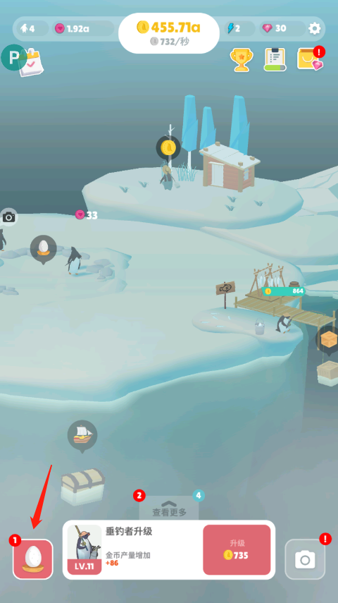 当积累到足够的金币时,就能得到一颗企鹅蛋,这时候点击左下角的企鹅蛋就可以了。