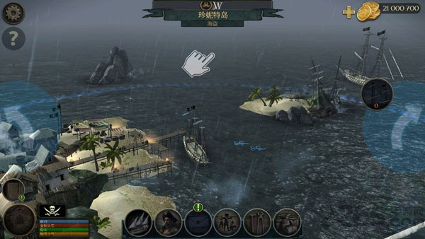 战斗二的要点是装备栏位必须填满。这款游戏里敌船的实力是和你的船挂钩的,等你有了大战船,如果装备还是只有一张帆、一门炮、一块甲板,那就麻烦了,碰到敌船会打得特别吃力。就算只能买最低级的简易帆、短炮和普通木板,也一定要把装备栏都塞满。实际上,就算带着一整套最低级的满装备,也能打赢敌船(毕竟对手是电脑AI),但最担心的就是你装备没凑齐,打起来会损失惨重。