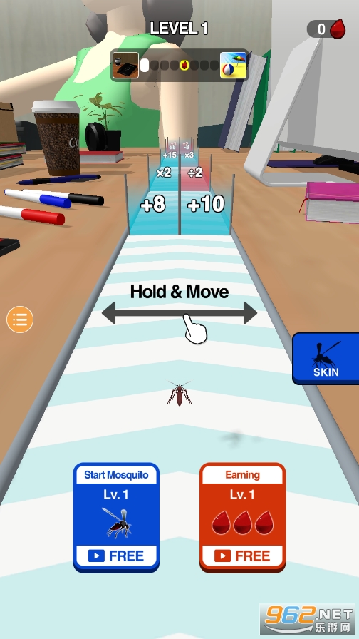 开局只有一只蚊子,通过不断选择不同的进化方向,就能集结起你的蚊子大军。抵达终点后,就可以饱餐一顿啦。你需要操控队伍躲避危险,途中有不少能增加蚊子数量的道具,记得去收集。最后闯关成功时,就能指挥所有蚊子吸干敌人的血,玩法相当有趣哦。