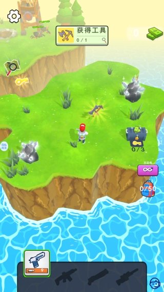 1、玩家第一步需拾取地面上的工具,每一种工具都可加快采集资源的速度,从而更迅速地获取更多资源奖励。