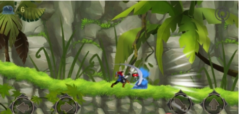 操作采用虚拟按键控制,例如左下角设有方向键,右下角则配备攻击键与跳跃键。