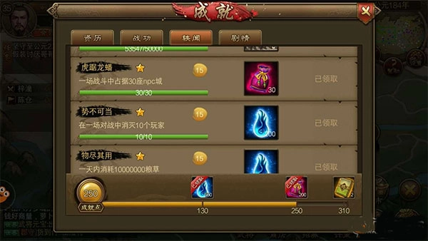 【一统江山】攻克襄阳,成就霸业,解锁四项特权,坐享他国朝贡,更有额外元宝产业,福利不断。