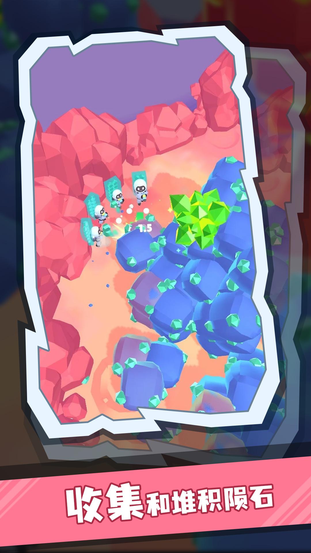 2、想要开采更多矿石,只需积累足够金钱,就能顺利组建采矿团队。这是一款十分有趣的休闲挖矿游戏。