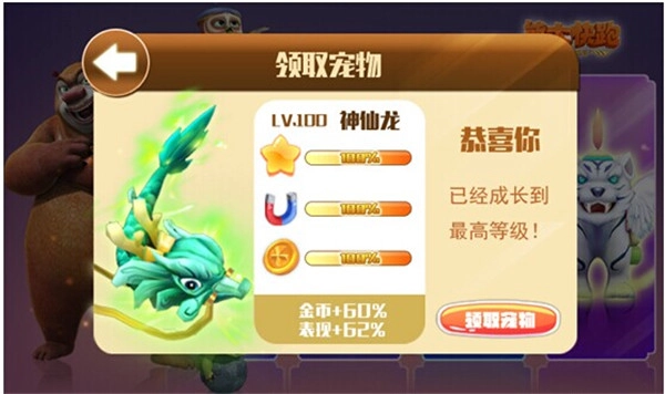 “小熊猫”的性能明显优于“小白虎”,同样具备吸金吸分的属性,但在“小熊猫”身上这一效果直接翻倍,把金币和积分的提升幅度拉到了10%。