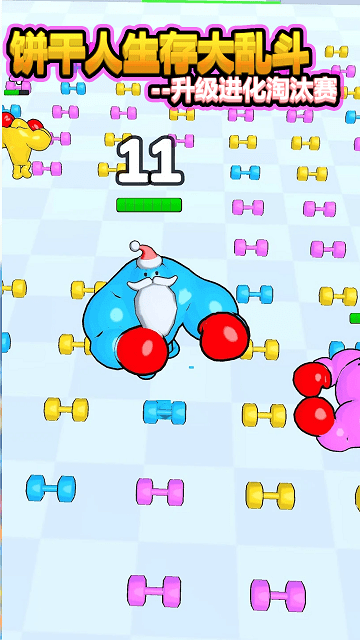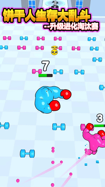 在竞技场里四处奔跑收集哑铃提升实力,和其他拳击手在精彩绝伦的io对战中一较高下!努力成为赫赫有名的饼干人吃鸡斗士吧!