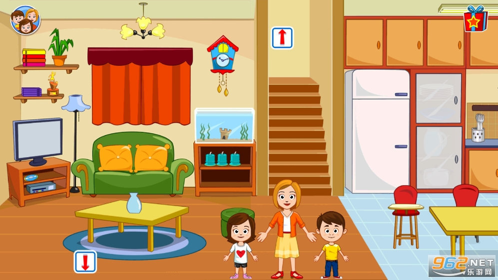 这款游戏可以被视为一个大型的全方位互动玩偶屋,你能够在屋子里触碰并与你所看到的几乎每一个物品进行互动。在这个游戏里,孩子们可以自由地玩耍、发挥想象并参与互动。比如给不同的家人装扮,打开电视机,到户外荡秋千,制作晚餐,或者仅仅是玩遥控直升机。在My Town:家庭这个游戏中,各种各样的内容都能找到。