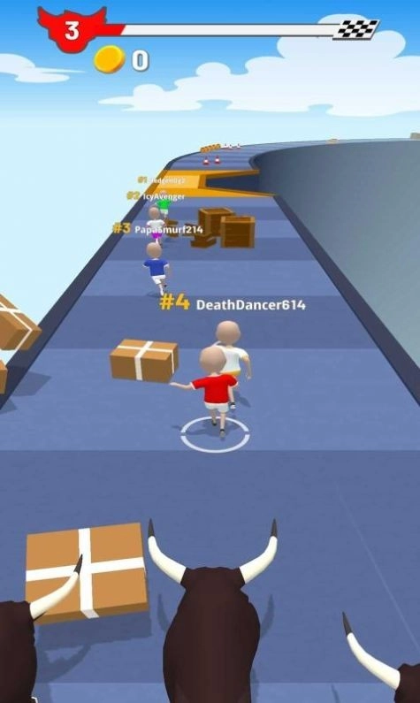 2、在公牛追逐赛里,玩家在不同关卡会遭遇各类危险,因此得时刻留意眼前的实际状况,及时避开障碍与跳跃间隙,这样才能更顺利地战胜对手。