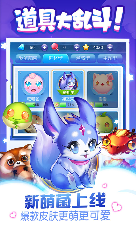 《萌菌大作战》是同城游于2017年推出的精品移动游戏,核心玩法围绕“大细菌吞噬小细菌”展开,将这一简单机制转化为兼具休闲趣味与竞技性的体验。玩家可在实时对战中自由选择对抗或合作模式,尽情享受互动乐趣。 这款游戏不仅画面呆萌可爱,玩法也充满挑战性——在萌菌的世界里,每个玩家都是独一无二的萌菌个体,“努力生存”是唯一目标:吞噬草球或体积更小的细菌能实现快速成长,吸收养分则可缓慢累积体型;不过细菌长大后移动速度会逐渐变慢,此时通过分裂、喷射等操作就能有效提升移速。此外,游戏还支持更换皮肤自定义细菌外观,搭配各种呆萌表情,让整体体验更添趣味,让人爱不释手!