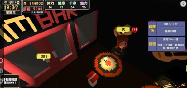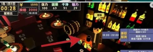 第四种方法是,点击游戏页面里的“出门”选项,在地点中选择酒吧,这样就能前往酒吧做兼职了,每次打工能赚180元。