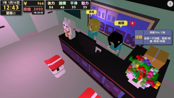 第一个是在美容院工作的美琪,周一到周五上午10点前后,她会去公园锻炼,其余时间大多待在美容院里。走进美容院后,能看到前台有两个姑娘,要是一直点击右边那个姑娘,就能显示出她的名字,我们还能看到名字旁边的爱心。