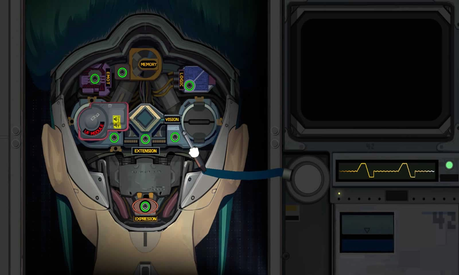 2、情感骇入,通过播放“特征电流”倾听患者记忆,选择治愈其“机械灵魂”或篡改数据操控命运。