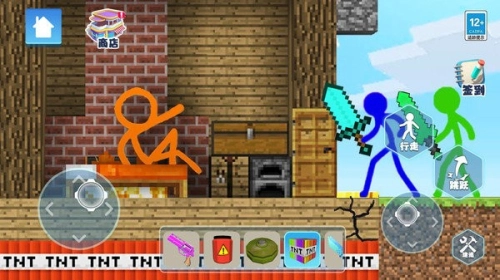 基础玩法为操控火柴人利用武器战胜敌人,与此同时破坏环境里的方块来获取资源,简洁直白的战斗机制能带来畅快的体验。