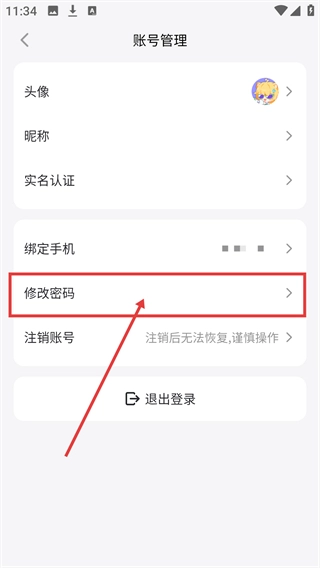 3、进入账号管理页面后,找到并点击【修改密码】选项,即可进入密码修改界面,为更新账号密码做好准备。