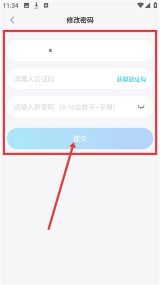 4、进入修改密码页面后,按顺序填写原密码、验证码和新密码,接着点击【提交】按钮,就能顺利完成密码修改了。