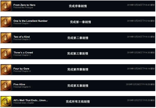 均是通关即可达成的成就,不再赘述。