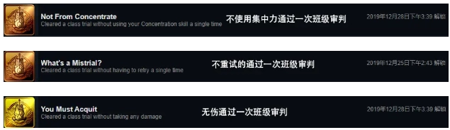 这三项在正常游戏流程里基本都能完成,要是没达成的话,只要再参与一次班级审判就行。(也可以选轻松难度的第一章班级审判来达成)