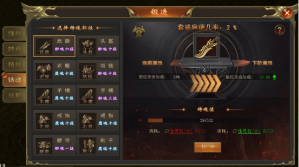 铸魂:通过铸魂提高人物的攻击力和防御力。