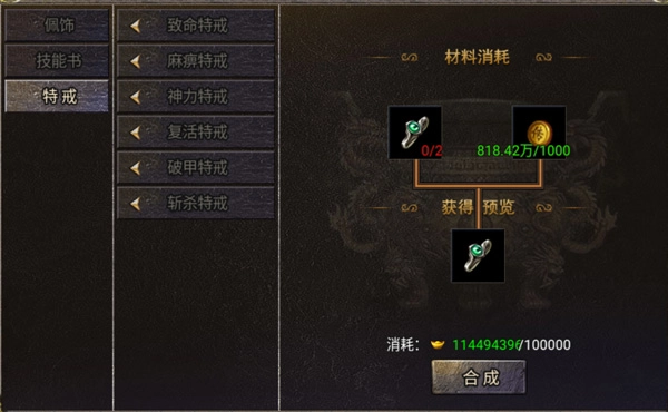 材料合成途径:可通过合成-特戒面板来合成神力特戒