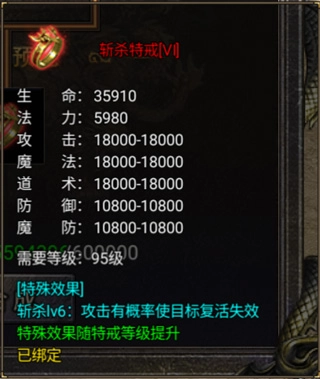 特戒的特性是:角色死亡时会立即复活,同时恢复一定比例的生命值与魔法值。