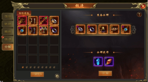 分解:那些没办法回收的装备,能够借助分解来获取材料。