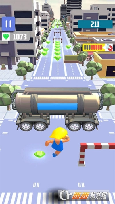 在城市里尽情奔跑、跳跃,一路向前吧!连绵的街道上藏着不少珍贵的宝藏,奔跑着把这些宝石收入囊中,就能积累更多积分。危机四伏的道路上车流不息,还有各种障碍物挡路,得靠跳跃和滑行来躲开它们。凶狠的野狗在身后紧追不舍,千万别回头,也别停下脚步,只管勇往直前,朝着前方径直冲去。