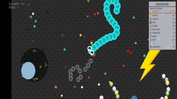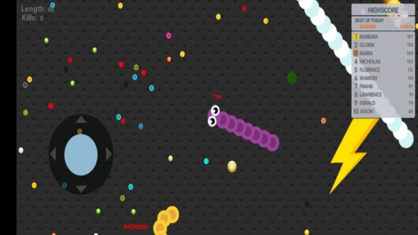 操控蠕虫移动:借助简易操作引导蠕虫在场内穿梭,吞食彩色圆点来增加自身长度,同时需避开自身及其他蠕虫的躯体,避免因此被破坏而造成操作中断。