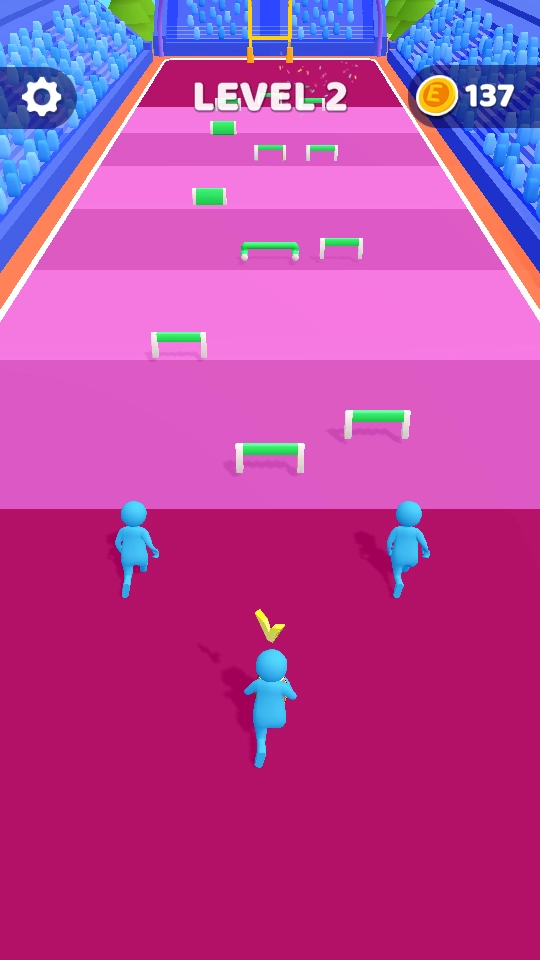 在游戏场景中,你需要依据画面给出的提示来操作:当持球的角色遇到带有手型指引标识的队友时,点击该队友所在的位置就能完成传球动作,在此过程中还要注意避开障碍物,推动游戏进程。