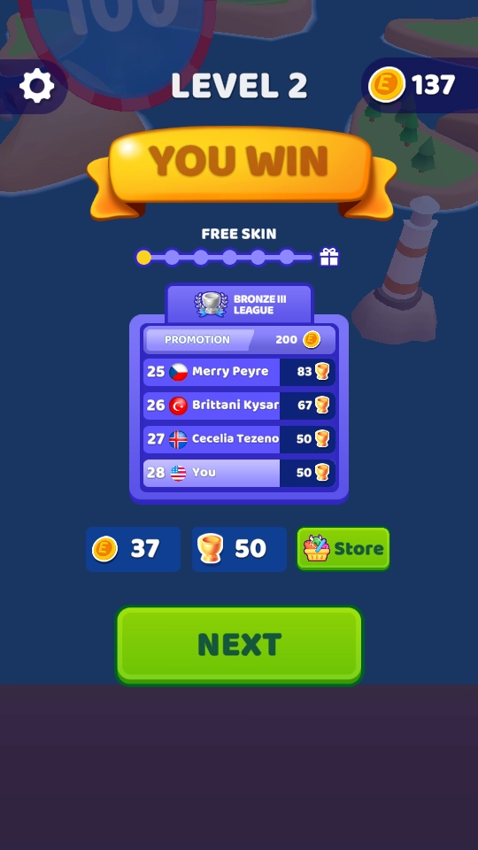 顺利通关后会显示胜利界面,此时可以选择点击蓝色按钮来领取三倍奖励,也能够点击界面下方的文字选项进入下一关继续进行挑战。