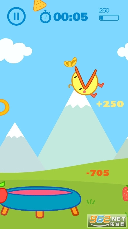 《猕猴桃跳跳乐 游戏 安卓版》是一款趣味十足的跳床吃水果游戏,小黄鸭从蹦床上跃起后会弹向高空,空中会掉落各种水果、三明治等食物。你需要滑动小黄鸭,让它吃到这些食物,同时要注意在下落时必须精准落在蹦床上,一旦碰到地面,游戏就会结束。