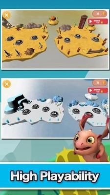 龙虫里那只可爱的小萌龙要飞向天空收集金币,你得控制它保持平衡别掉落,所以一路上得好好掌控它的飞行能力,帮它掌握飞行技巧,自己的操控技术也能跟着提升。收集金币能解锁新道具,收集越多奖励越多,游戏里还有好多萌龙角色可以体验,不同区域难度也不一样。
