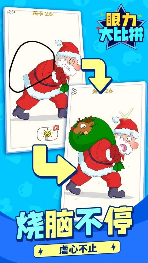 眼力大比拼是一款休闲益智类游戏,核心玩法围绕找茬与观察力挑战展开,适合所有年龄段的玩家。在游戏过程中,玩家需要从两幅极为相似的图片里找出不同之处,这些差异可能体现在颜色、形状、位置等方面,并且随着关卡推进,难度会逐步上升,越往后的关卡里,差异点会变得越发隐蔽。