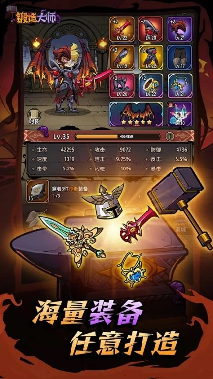 亲手打造百余种装备,通过升级锻造铁砧,持续提升装备品质,增强自身实力。