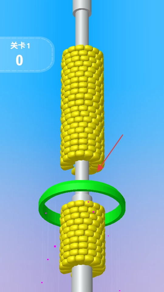 在第一关,留意玉米和绿色圆环的位置,调整圆环的位置,使玉米能够顺利通过,从而完成爆米花的制作,推动挑战继续进行。