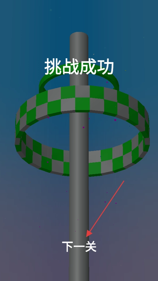 挑战已顺利完成,界面弹出“挑战成功”的提示,点击“下一关”按钮,即可进入全新关卡,继续操控圆环,向更多精彩关卡发起挑战。
