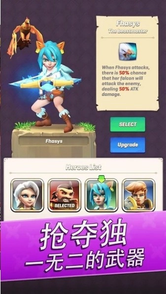 在这款充满动感的奇幻冒险游戏里,玩家需要解锁史诗级英雄,收集各式各样的英雄与对应的专属武器;通过参与战斗,体验丰富多变的玩法,在轻松易上手的操作中不断提升自身实力,最终完成惊险的突袭挑战。