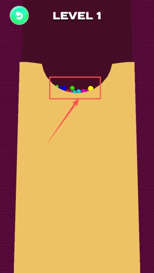 开启闯关准备:挑选目标关卡,掌握手指挖沙的操作方法,留意彩色小球和白球堆的方位,清晰“挖路引导小球染色”的核心任务。