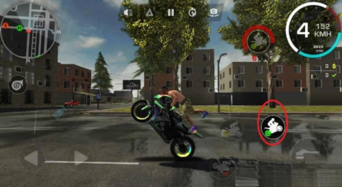 1.右侧第二个按钮需与驾驶键搭配操作,能够让摩托车车头翘起,从而完成前进特技动作。