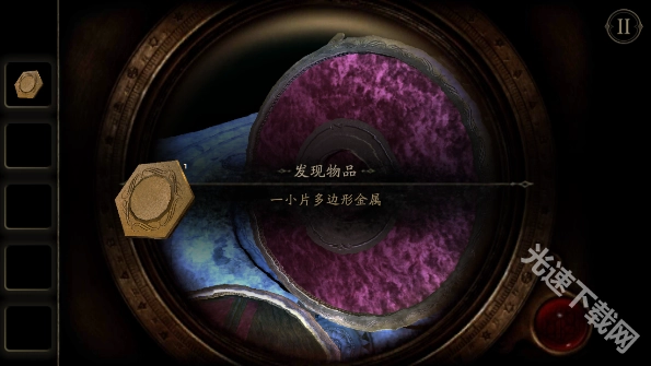 之后还得按照指示通过目镜观察盒盖,按下带有红色指纹标识的位置,就能获得一块六角形的金属片。我本想称之为徽章,但原文的翻译也仅仅表述为一块金属片。