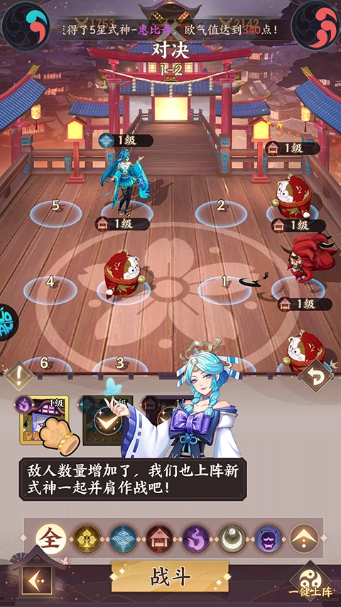 4.式神强化:想要迅速制胜?那就不能忽视式神的升级与养成。利用获得的资源,为式神提升等级、穿戴精良装备,打造无坚不摧的战斗团队。