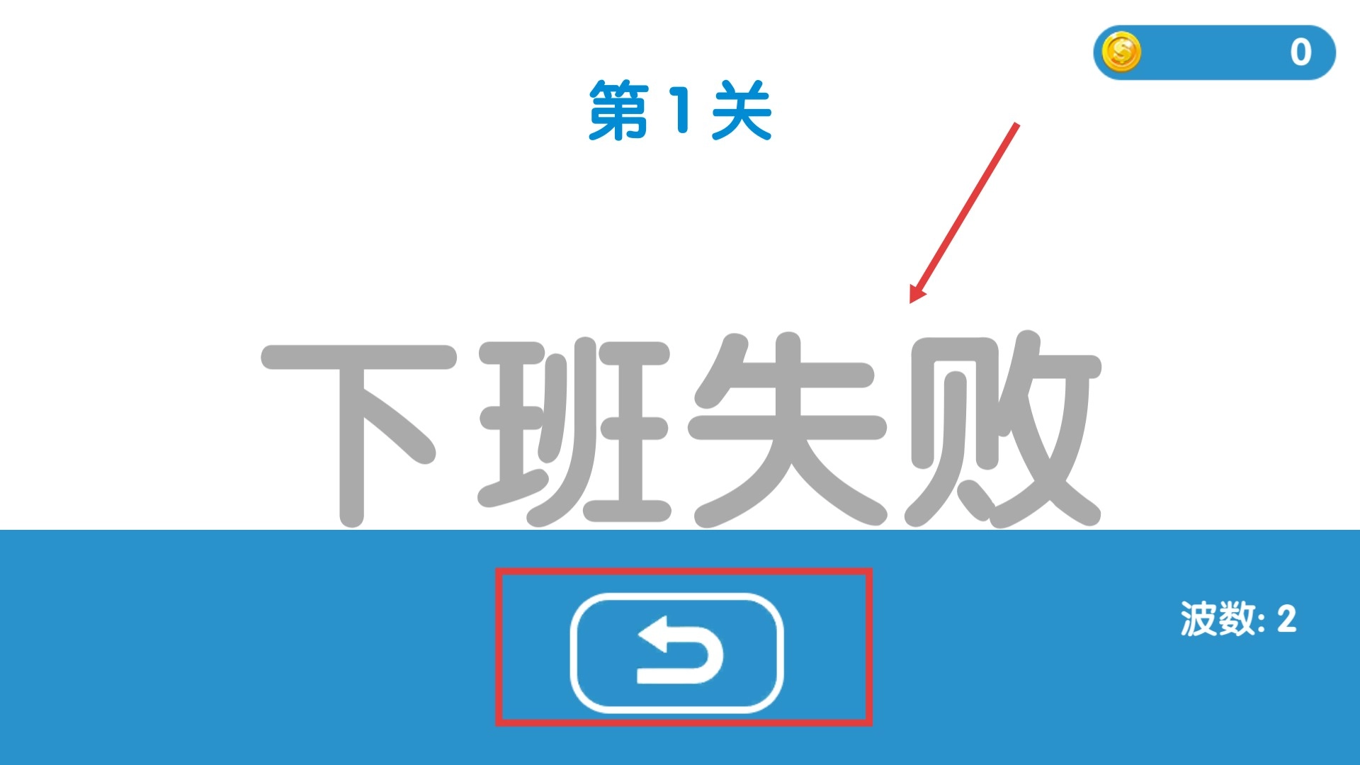 4、要是遇到【下班失败】的提示,就点击重新开始按钮再次尝试关卡,通过积累经验来成功打卡下班。