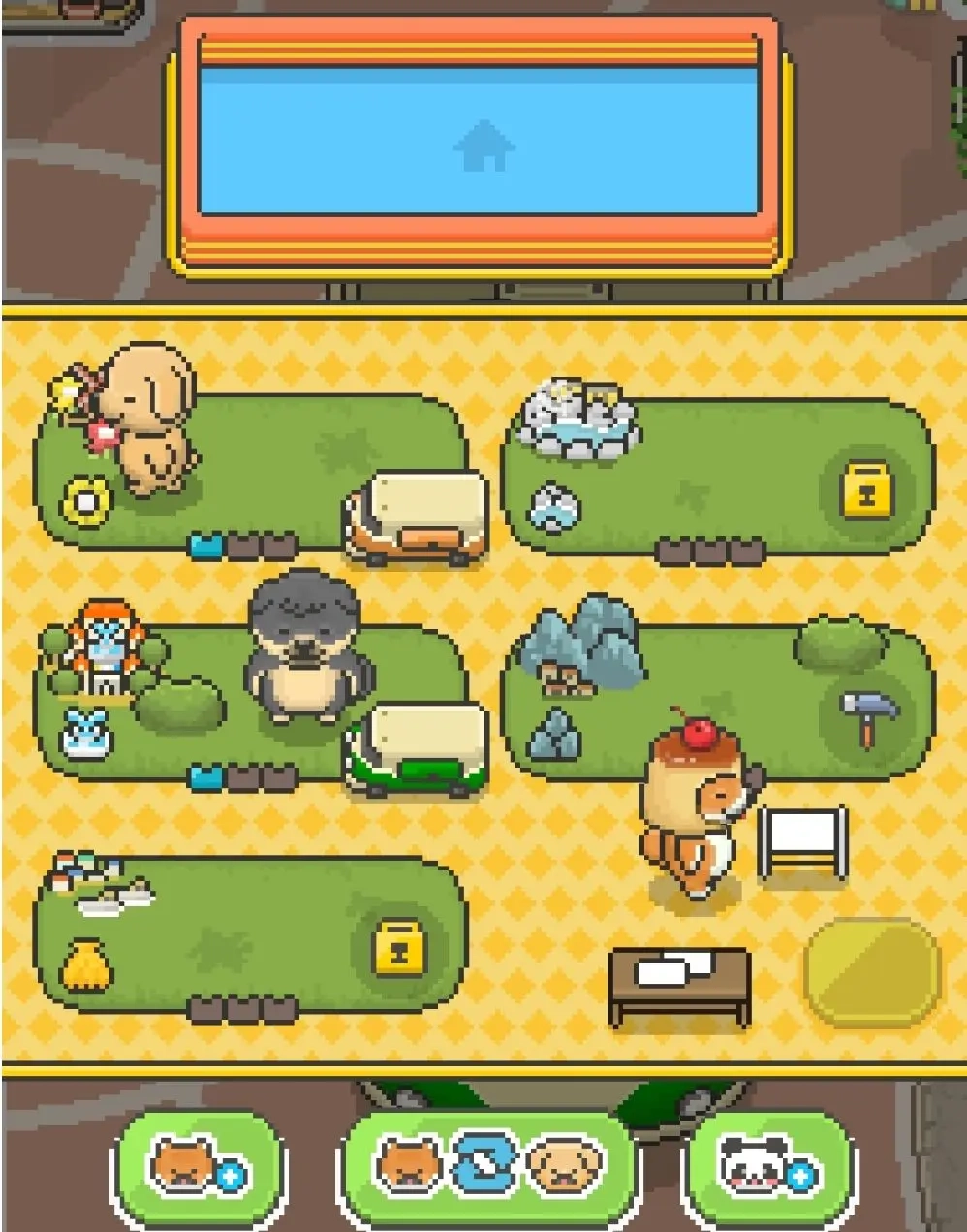 1、温馨的像素风游戏画面,各种Q版可爱的动物形象。