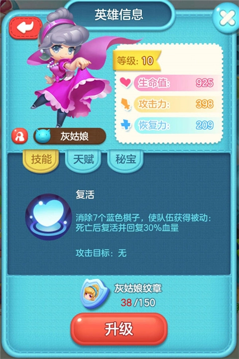 灰姑娘作为蓝色阵营的英雄,拥有复活的特殊技能。当消除7颗蓝色棋子后,她会为整个队伍叠加一层被动状态,该状态能让角色在死亡时触发复活效果,并恢复部分生命值。在应对具备高爆发能力的怪物或实力强劲的BOSS时,选用灰姑娘能有效避免队伍成员被瞬间击败的情况发生。