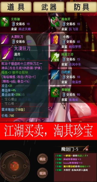 4.挂机系统:即使离线,也能通过挂机获取经验与装备,让你的江湖之旅永不间断。