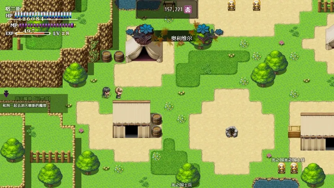 接下来去完成另一个支线任务,交付任务的时候,记得先让对方把报酬给你。这时候差不多就能前往上方的山洞了。需要注意的是,在这里最好先拔出剑,再开始打怪。黄色的怪物通常都比较特别。之后返回去交任务,找到村长,准备前往下一层。